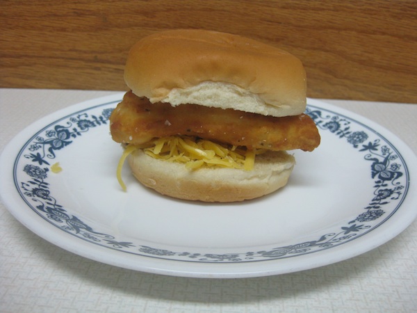 When your oil is hot, take the fish, dredge lightly in the flour, then dunk it into the beer batter, and then back into the flour for a good coating before slipping it into the oil. (Do not overcrowd your pan--it will lead to greasy fish! Blech.) Cook for a few minutes on each side until it is perfectly golden brown, pull it out and drain it on a tea towel or paper towels or newspaper or a paper bag or or or, well, whatever. Serve. :)